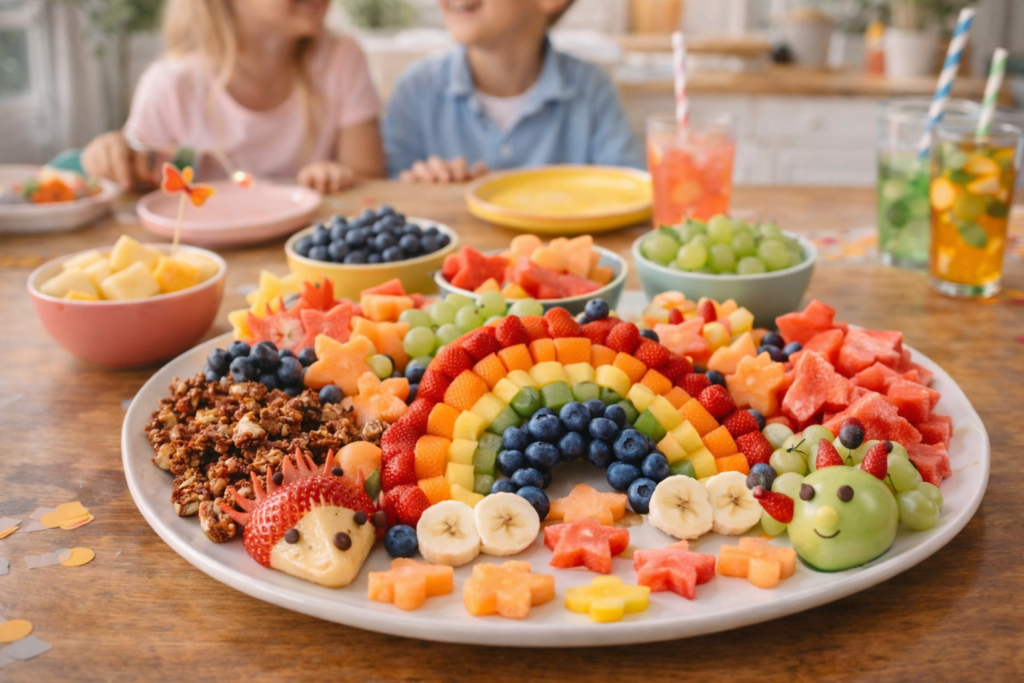 O planejamento envolve pensar na idade das crianças, no horário da festa e na forma como as frutas serão servidas. Quando tudo está acessível e visualmente divertido, a chance de aceitação aumenta muito.